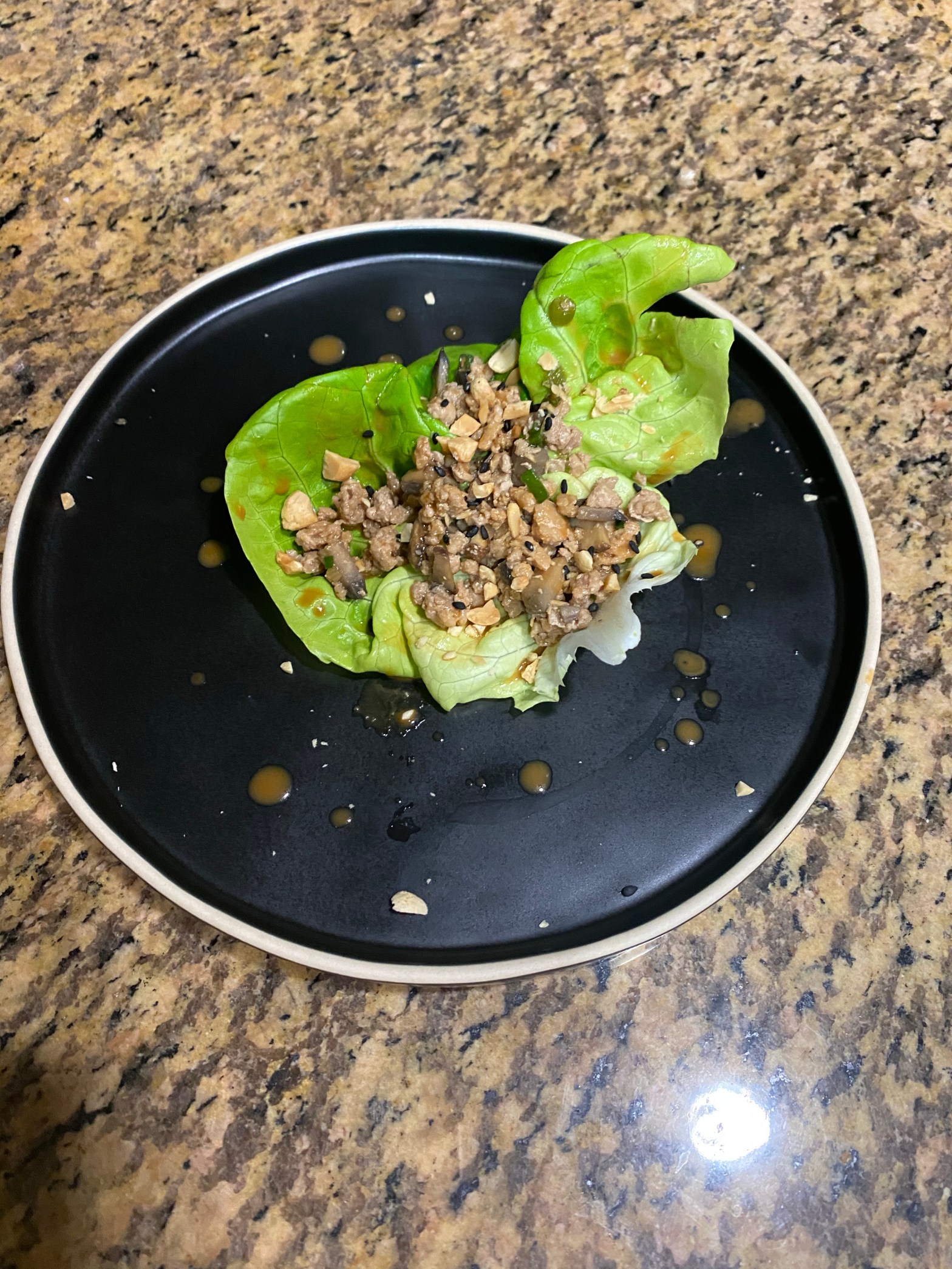 Ingredients: 1 lb ground pork 3-4 Scallions/ green onions (chopped greens and whites) 2 portabella mushrooms (diced) 1 head of butter lettuce Salt Pepper 1 tablespoon vegetable oil PB fit powder (or peanut butter) Soy sauce Sesame oil Rice vinegar Peanuts (diced) Sesame seeds Chili oil Granulated sugar Pork In a large skillet, add theContinue reading “Pork Lettuce Wraps”